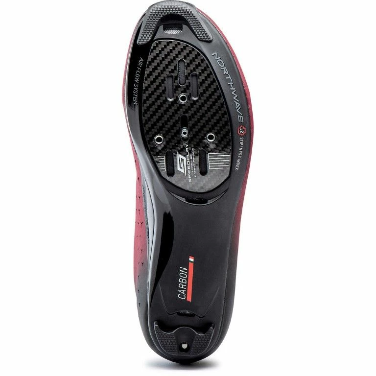 - Morph Carbon 12 AAS-zool met een volledig carbon inzetstukken in het pedaalgebied met een stijfheidsindex van 12,0. De exclusieve Anatomical Arch Support®, gemaakt van TPU, zorgt ervoor dat de schoen perfect gevormd kan worden op de voetboog, waardoor het de ideale zool is voor elk type voet.